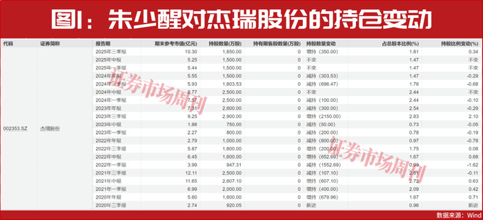 以杰瑞股份为例,公司前十大股东名单中,由朱少醒管理的富国天惠精选成长混合基金、社保基金等机构均位列其中。且结合历史数据,朱少醒对杰瑞股份的重仓已由来已久,首次公开现身公司前十大股东的时间为2020年三季度末,此后只有2021年四季度一个季度退出过公司前十大股东阵营(见图1)。