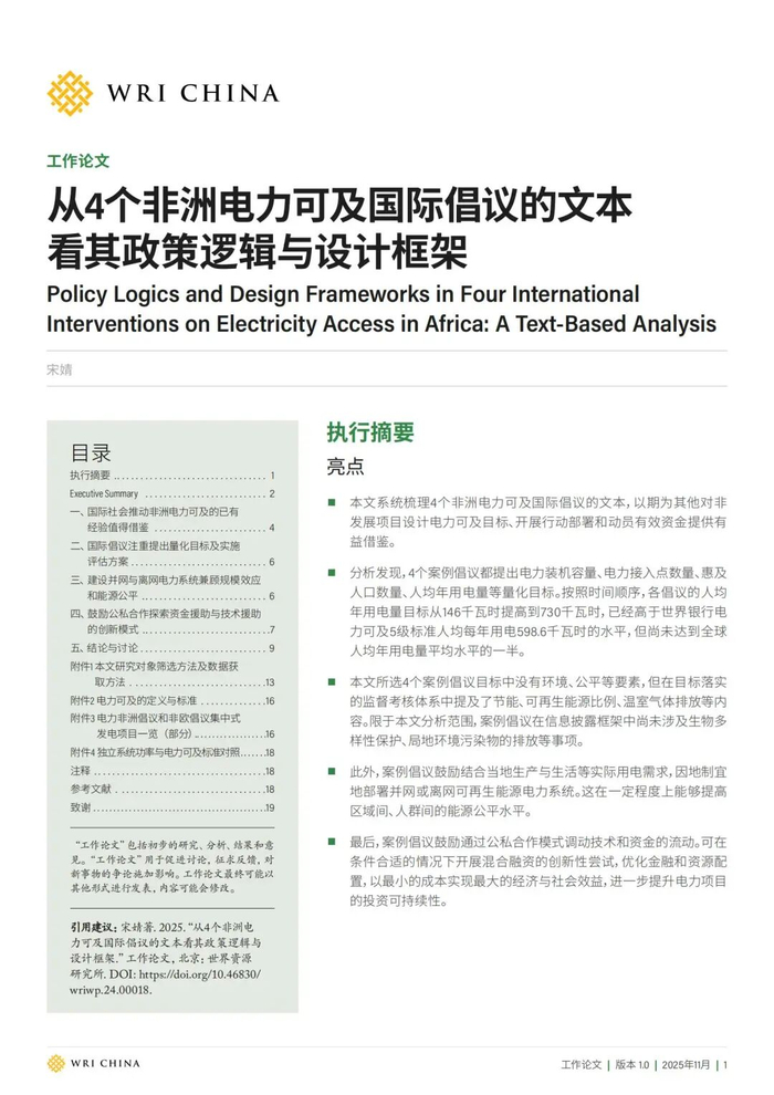 WRI最新工作论文《从4个非洲电力可及国际倡议的文本看其政策逻辑与设计框架》 | 图源:WRI推动非洲电力可及: