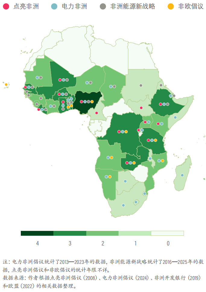 这四项倡议在时空分布上呈现集中特征:大多在2030年结束,并主要以无电人口最为集中的撒哈拉以南地区为重点。
