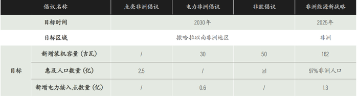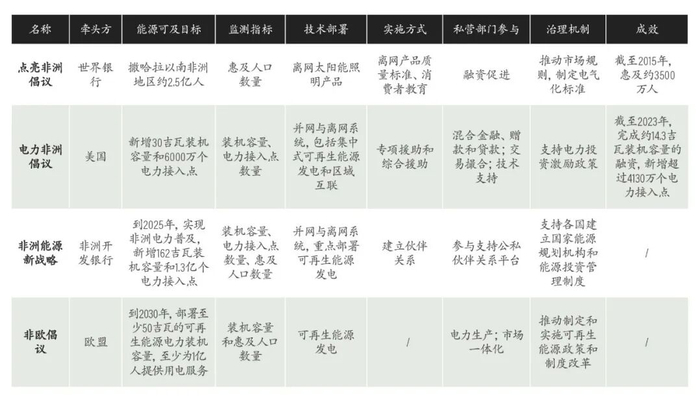 四项国际倡议内容简述 | 数据来源:WRI根据文献整理“点亮非洲倡议”