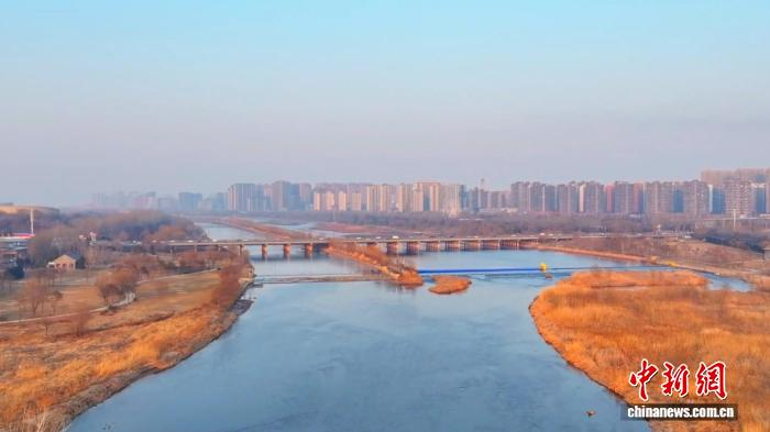 冬日的汾河。国网临汾供电公司供图中新网临汾2月12日电 题:山西临汾:电力护航生态线 一泓清水入黄河